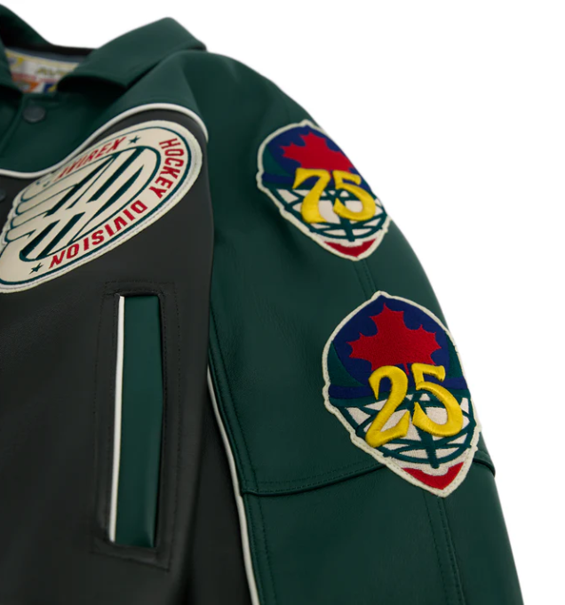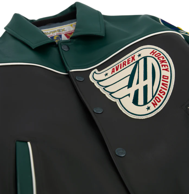 Leather Varisity Jacket mens description