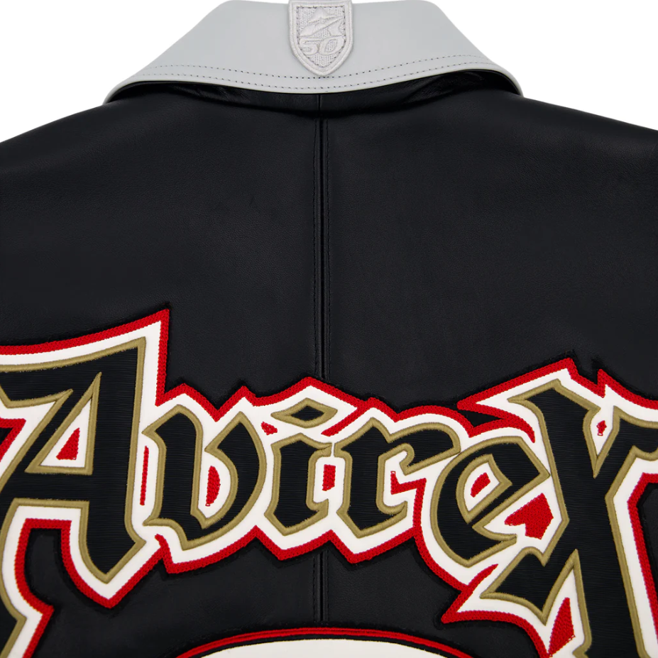 Home / All / Leather Jackets / Men's Leather Jackets / Men's Leather Aviator Jackets / Custom 2 Tone Goth Leather Jacket OEM AVIREX Style Men's Varsity Leather Bomber Aviator Jacket