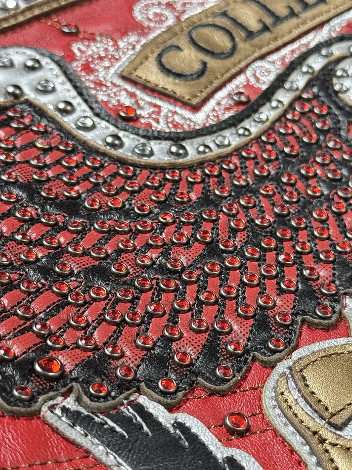 Home / All / Leather Jackets / Men's Leather Jackets / Men's Leather Aviator Jackets / Wholesale Custom High Street Men's 100% Genuine Plush Leather Bomber Jacket OEM Flame Rhinestones Embroidery Varsity Jacket