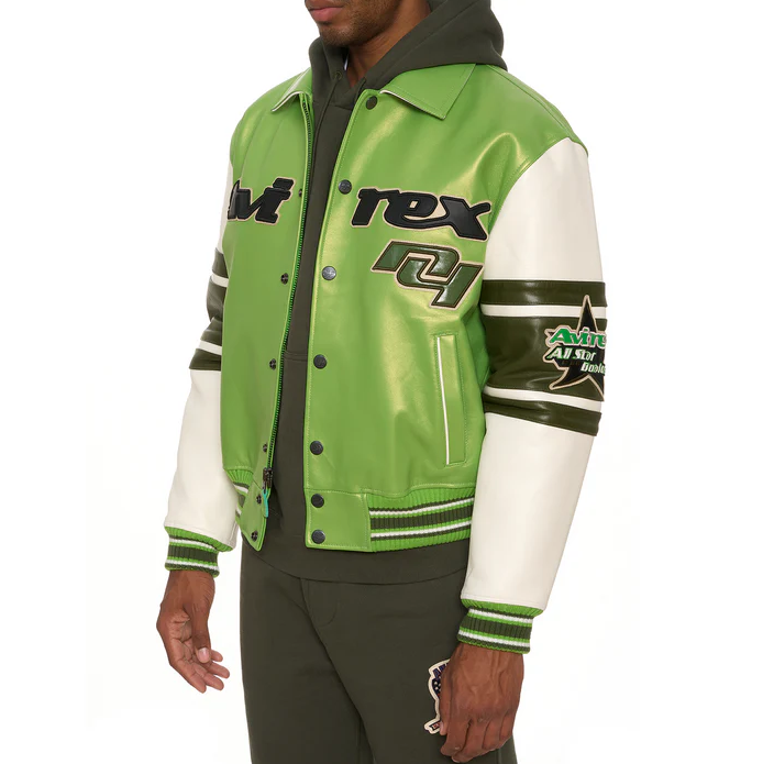 Leather Varisity Jacket mens description