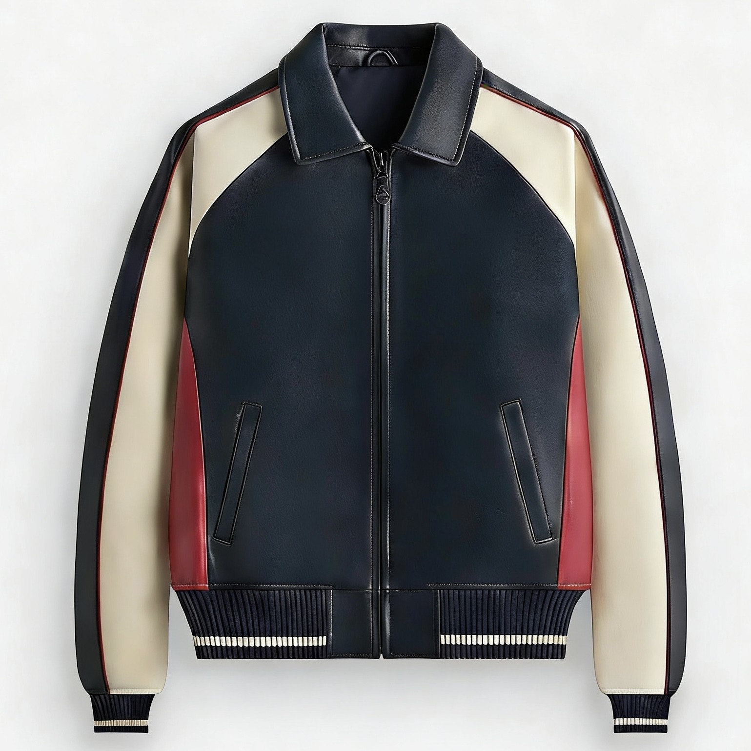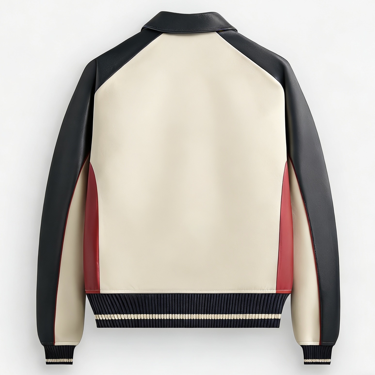 Home / All / Leather Jackets / Men's Leather Jackets / Men's Leather Aviator Jackets / Custom Made Basket Player Style Breathable Patchwork Genuine Leather Bomber Jacket for Men Embroidered With Patch Design